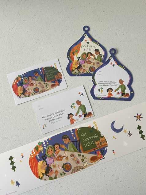 Cards, stickers, and other prints for Olivia's delicious baked goods!